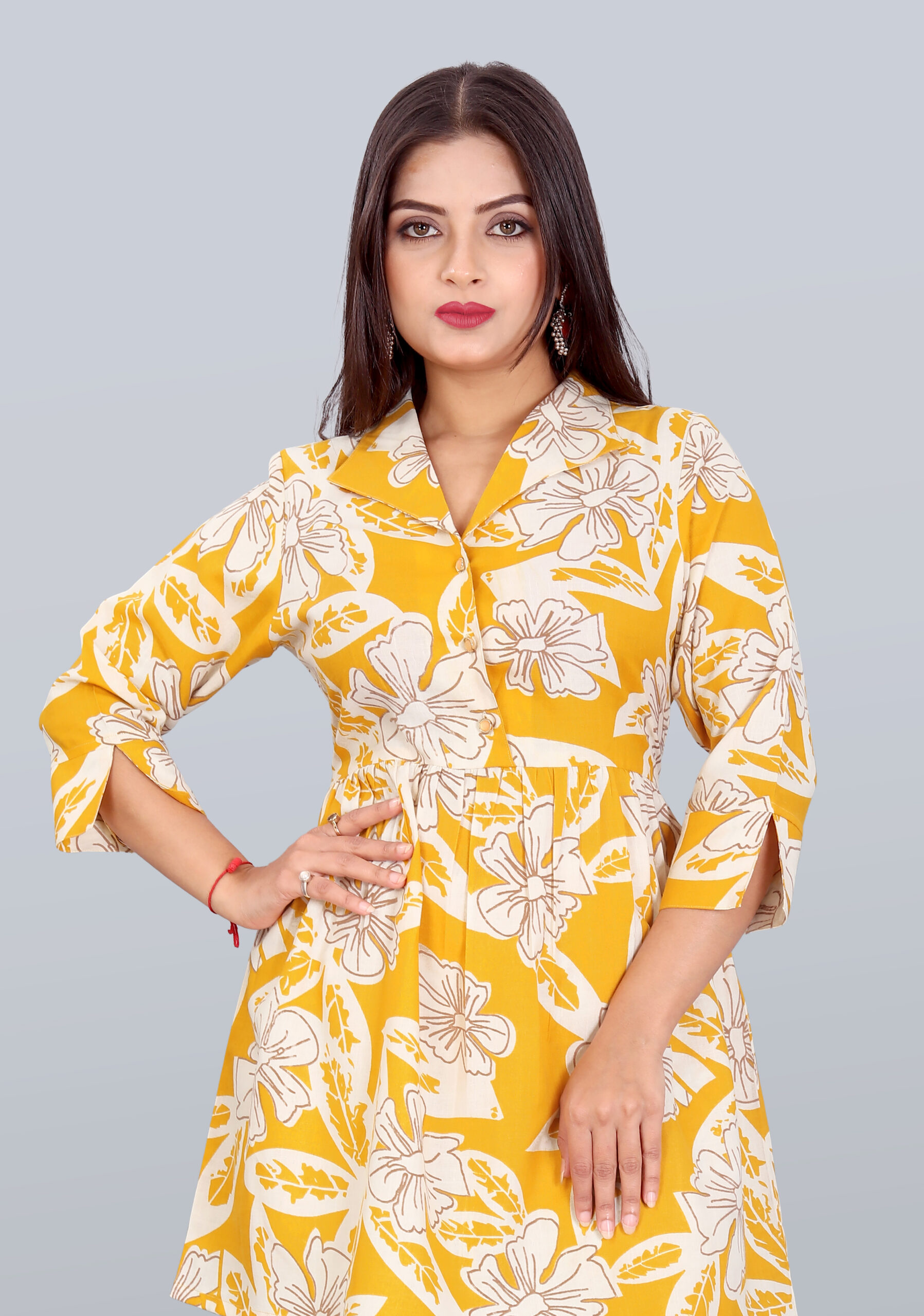 Vibrant Design: Features a sunlit yellow base with bold cream floral prints that add a fresh and lively touch to your look.